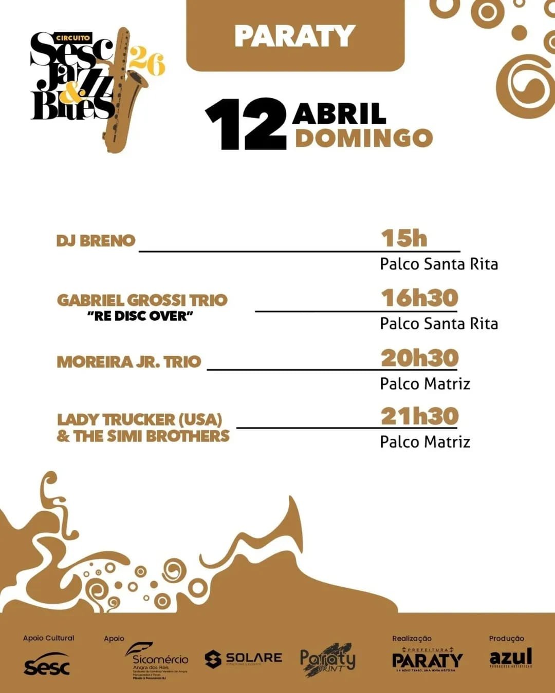 O Sesc Jazz & Blues Paraty 2026 promete movimentar a cidade com uma seleção de artistas e shows distribuídos em horários estratégicos, permitindo ao público curtir o evento ao longo do dia e da noite. Com atrações no centro da programação cultural de abril, o festival reforça Paraty como destino de experiências musicais marcantes.