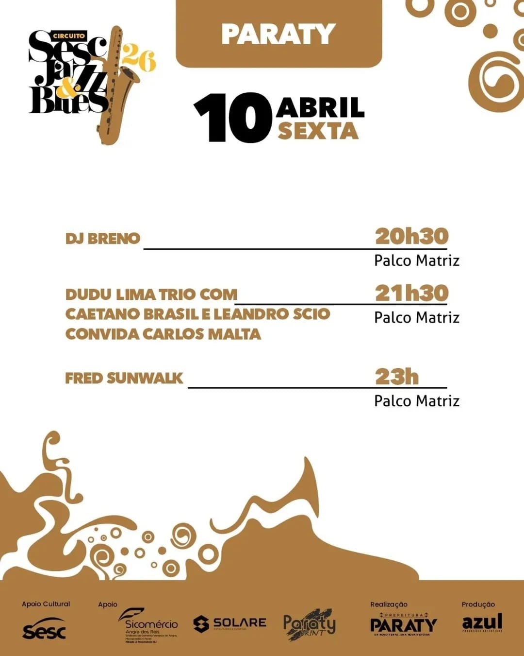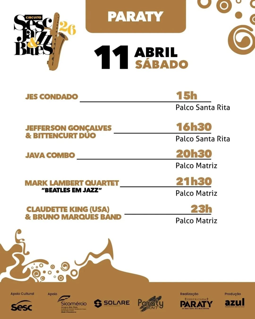 O Sesc Jazz & Blues Paraty 2026 promete movimentar a cidade com uma seleção de artistas e shows distribuídos em horários estratégicos, permitindo ao público curtir o evento ao longo do dia e da noite. Com atrações no centro da programação cultural de abril, o festival reforça Paraty como destino de experiências musicais marcantes.
