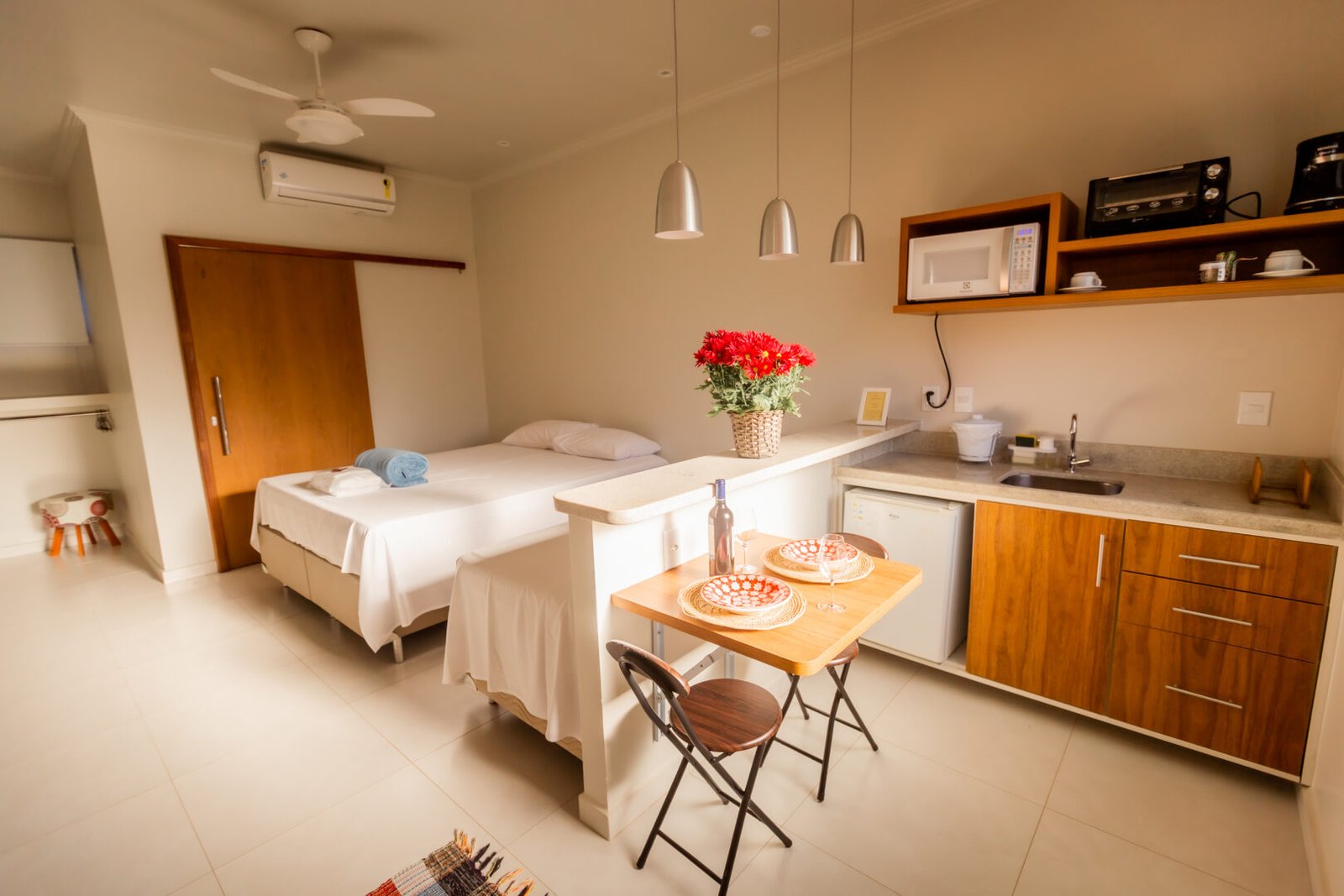 As suítes possuem cozinhas individuais, um diferencial na região.
