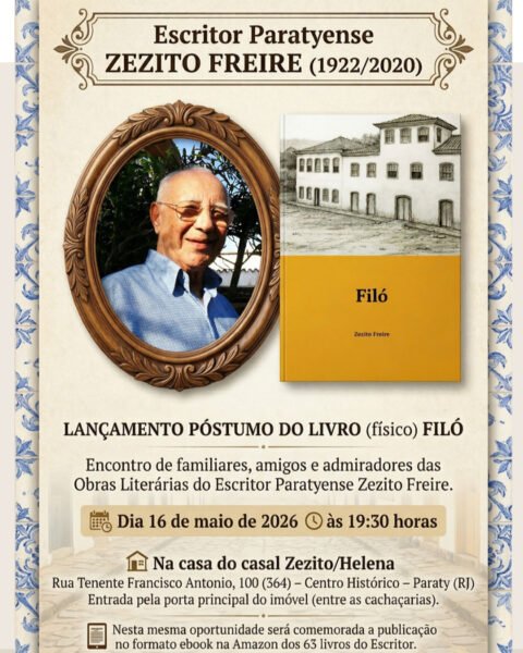 No dia 16 de maio de 2026, às 19h30, acontecerá o lançamento póstumo do livro físico “Filó”, de Zezito Freire, em Paraty.