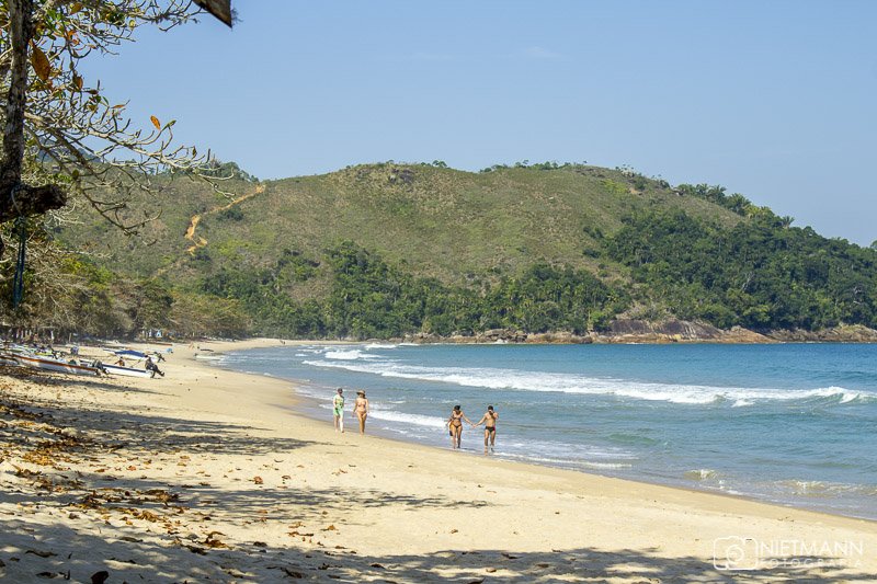 A vegetação nativa chega até a areia, criando sombras naturais e mantendo o ambiente fresco mesmo nos dias mais quentes. A comunidade caiçara local mantém pousadas rústicas e restaurantes simples que servem peixes frescos e pratos típicos da região.